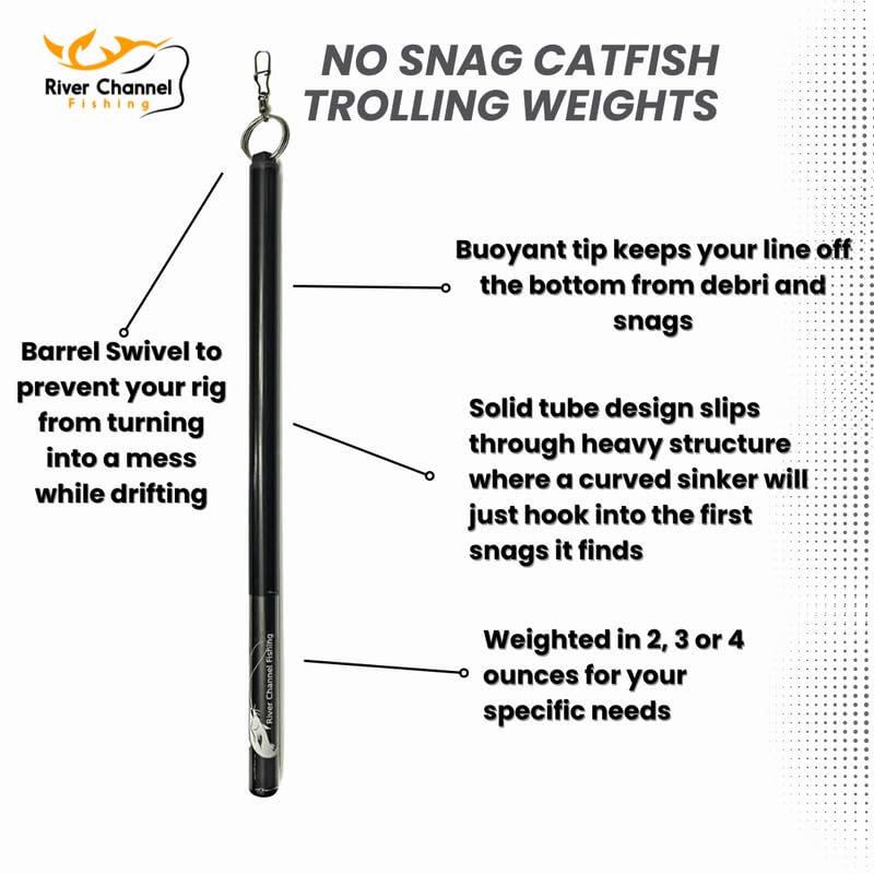 - 10-inch-long catfishing dragging weight with trapped air in the upper half of the sinker, allowing the no snag trolling weight to climb over heavy structure with ease.